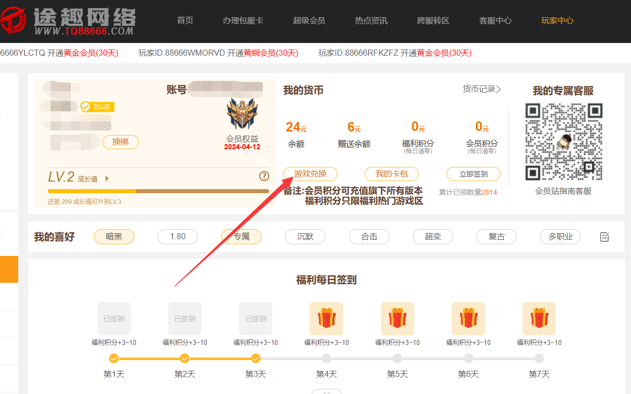1,首页选择选择【游戏兑换】